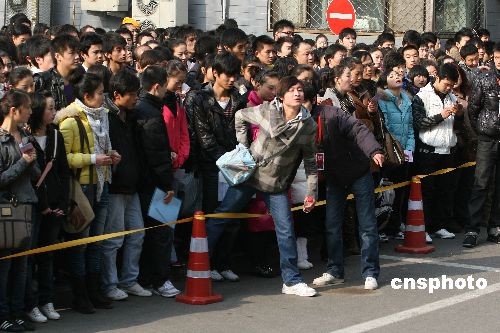 2月6日,最受社會關注、也是北京電影學院競爭最激烈的表演專業本科招生進入初試的第二天。由于2009年北影首次要求考生“素顏”應考,因此相比往年,現場濃妝艷抹、染著黃頭發、奇裝異服的考生并不多,個別化了淡妝的男女考生被要求先到衛生間洗臉后才能進考場。據悉,雖然2009年的招生人數由往年的30人增加到75人,但面對4234名報考者,淘汰率仍高達98.2%。表演專業初試將持續4天,2月11日上午公布參加復試人員的名單。