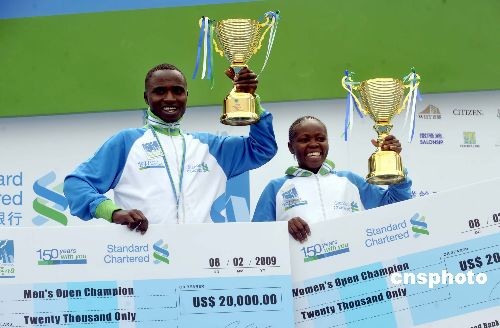 圖:肯尼亞選手包攬香港馬拉松男、女冠軍