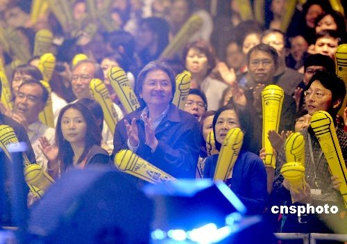 二月十四日晚,“香港二零零九東亞運動會.左麟右李演唱會”在香港紅磡體育館作尾場演出。圖為香港財政司司長曾俊華伉儷到場觀賞。中新社發 鄧慶樂 攝