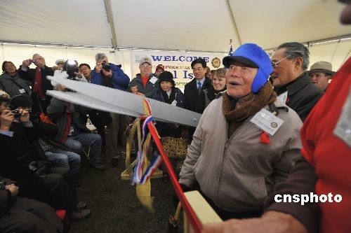 現年93歲廣東移民朱秋樹,1932年曾被羈留于此6個月,作為歷史見證人參加了剪彩儀式。