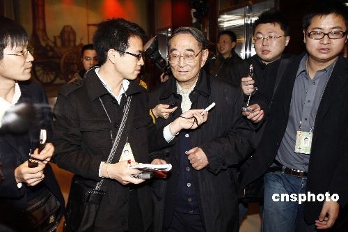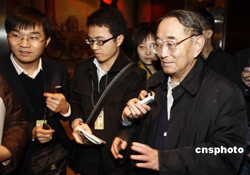 全國“兩會”即將開幕,代表、委員們3月2日陸續抵京報到。圖為民盟中央原名譽副主席、北京大學光華管理學院名譽院長厲以寧在北京駐地報到時遭遇記者“圍攻”采訪。中新社發 盛佳鵬 攝