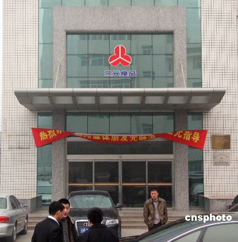 3月4日上午,北京三元集團獲拍石家莊三鹿集團部分破產(chǎn)資產(chǎn),包括三鹿集團的土地使用權、房屋建筑物、機器設備等資產(chǎn),以及三鹿集團所持有的新鄉(xiāng)市林鶴乳業(yè)有限公司98.8%的投資權益。圖為原三鹿集團總部大樓前,三元食品標志已經(jīng)替換原來的三鹿標志。中新社發(fā) 翟羽佳 攝