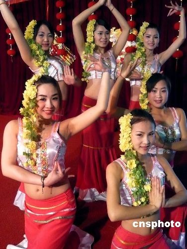 3月7日,為慶祝“三.八”國際婦女節(jié)的到來,北京植物園舉行賞花送花活動(dòng)。特設(shè)的“女人花”展區(qū)內(nèi)展示的花卉名稱中均帶有“女”字:如“小葉女貞”、“舞女蘭”、“美女櫻”等。每位在熱帶展覽溫室參觀的女士,可以得到一束美麗的康乃馨。圖為云南傣族姑娘頭戴鮮花為參加活動(dòng)的游客表演舞蹈。中新社發(fā) 錢興強(qiáng) 攝