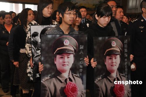 3月18日上午,鄭州市各界5000多人隆重悼別英雄女警王玉榮,為鄭州公安女英雄、全國公安一級英模、三級警監(jiān)、鄭州市公安局中原分局原副局長王玉榮送行。13年前王玉榮冒著生命危險從身帶炸藥包歹徒手里解救出28名兒童和2名幼師人質并機智將歹徒擊斃。后因積勞成疾與病魔頑強抗爭7年后于2009年3月14日病逝,英年48歲。