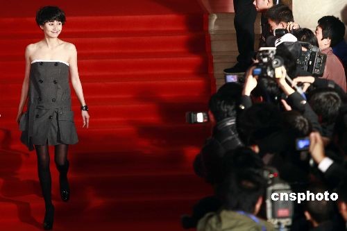 圖為袁泉出席“見證十年·真維斯娛樂大典”。中新社發 盛佳鵬 攝