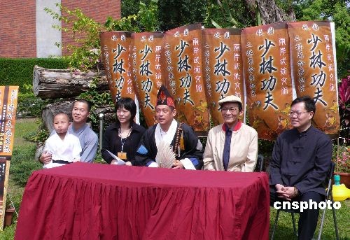 北京元鴻少林功夫團抵臺進行武術交流。圖為臺北記者會現場。中新社發 鄧敏 攝
