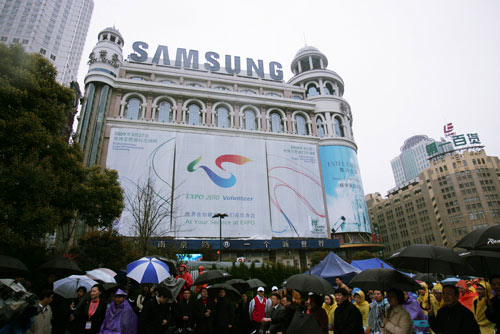 3月27日上午,“志愿世博 文明上海”中國2010年上海世博會志愿者標志、口號、歌曲發布儀式暨迎世博、講文明、樹新風“三五”志愿服務集中大行動在上海市五卅紀念廣場隆重舉行。中共中央政治局委員、中共上海市委書記、上海市世博會籌辦工作領導小組組長俞正聲出席儀式并揭曉上海世博會志愿者標志。上海市市長、上海市世博會籌辦工作領導小組副組長韓正、上海市人大常委會主任劉云耕、上海市政協主席馮國勤、市委副書記殷一璀等出席儀式。