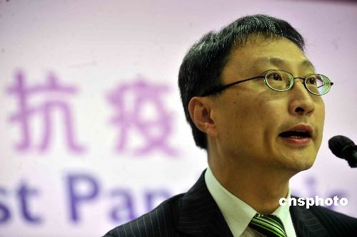 五月十三日,香港食物及衛(wèi)生局公布,再確診一宗甲型H1N1流感個(gè)案,這是香港至今確診的第二例“甲流”個(gè)案。香港衛(wèi)生防護(hù)中心總監(jiān)曾浩輝在記者會(huì)上表示,患者是一名二十四歲香港男子,十一日晚由美國舊金山乘搭國泰航機(jī)CX879返港,在抵達(dá)機(jī)場后,向診所求醫(yī),直接由救護(hù)車送往瑪嘉烈醫(yī)院隔離治療,并無進(jìn)入本地社區(qū)。中新社發(fā) 譚達(dá)明 攝