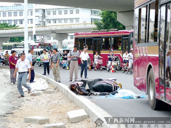 7月12日下午,一輛摩托車和一輛公交車同向行駛,途經南寧市雙擁桃源路口時發生碰撞,摩托車手被撞身亡,事故造成附近路段塞車嚴重。