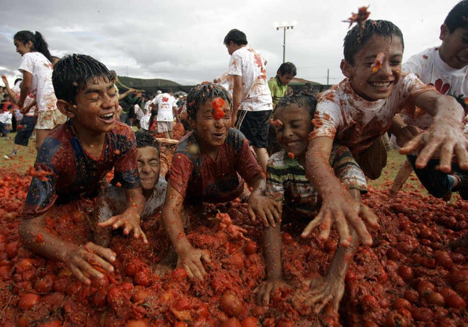 2009年6月14日,哥倫比亞在首都波哥大東北部的蘇塔馬錢小鎮舉行一年一度的“番茄狂歡節”,互不相識的人們互相投擲番茄慶祝節日。