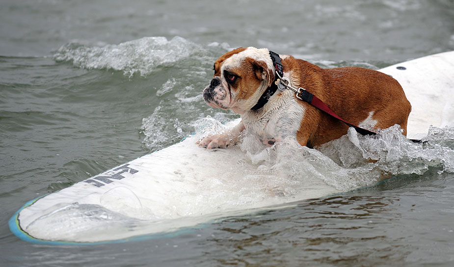 6月20日,在美國加利福尼亞州帝國沙灘舉行了一場(chǎng)小狗沖浪比賽,小狗們表現(xiàn)得十分認(rèn)真。