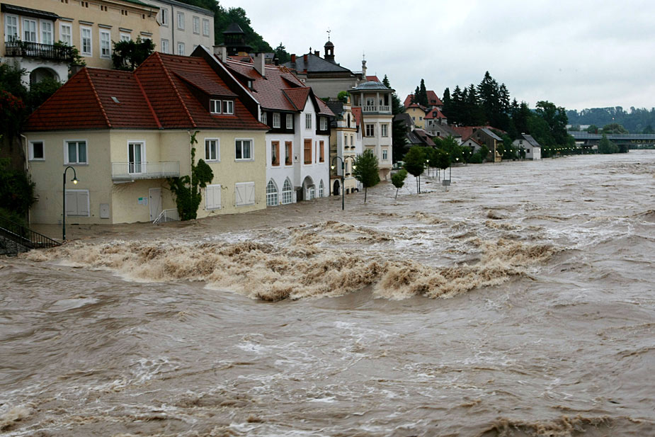 6月24日,奧地利部分地區由于連日降雨發生洪災。當地消防人員緊急出動,用各種工具將災民運往安全地帶。