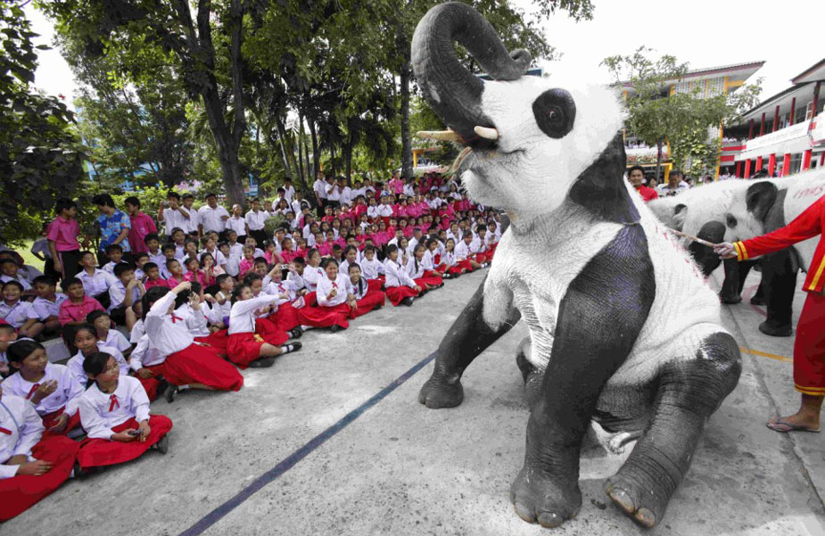 據英國媒體報道,近日,泰國因一只剛出生的熊貓陷入熱潮,泰國還準備向公眾征集熊貓幼崽的名字。幾只大象也“妝扮”成熊貓的模樣,借此吸引人們的關注。