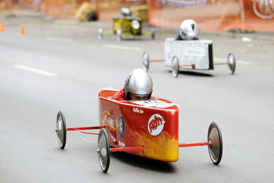 6月28日,德國柏林的德比郡舉行了第50屆“肥皂盒”競速賽車,該賽車沒有動力裝置,參賽者親手打造的“賽車”更使比賽妙趣橫生。