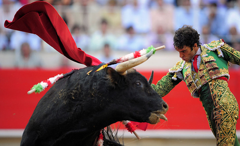 7月5日,西班牙巴塞羅那舉行了一場驚險的斗牛比賽,一位斗牛士在與牛較量時被牛頂起,所幸該人“武功”高強未造成大的傷害。