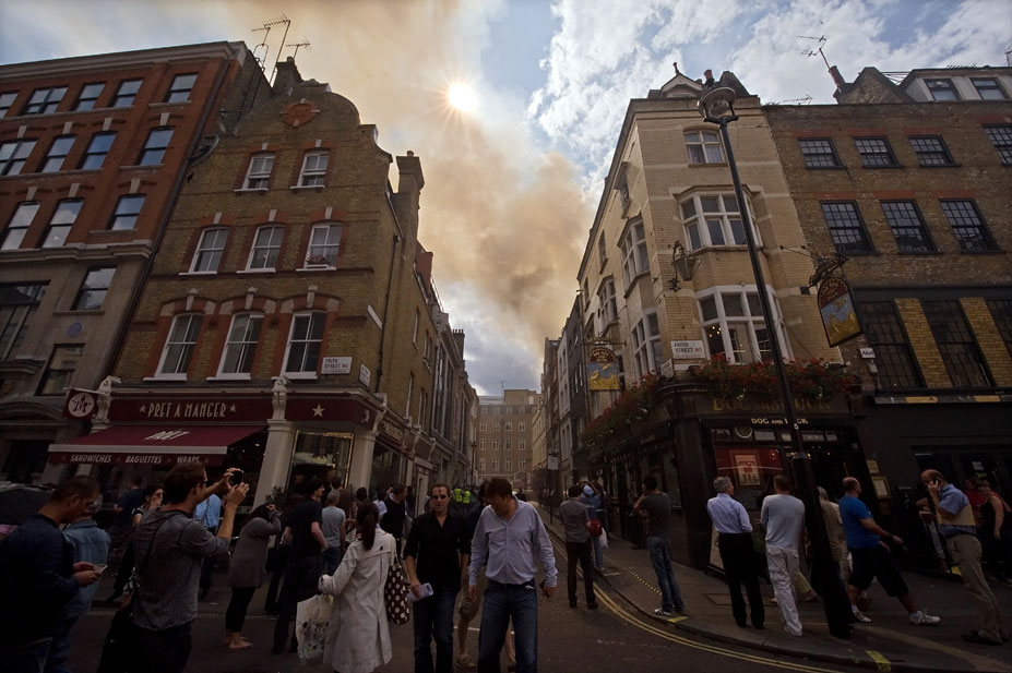 英國倫敦中部蘇豪區(qū)在當(dāng)?shù)貢r間10日下午2時左右發(fā)生火警,起火的5層高商業(yè)樓宇被嚴(yán)重焚毀,現(xiàn)場冒出大量濃煙,在倫敦市內(nèi)多處均清楚可見。消防部門派出12輛消防車及60名消防員進(jìn)行灌救。