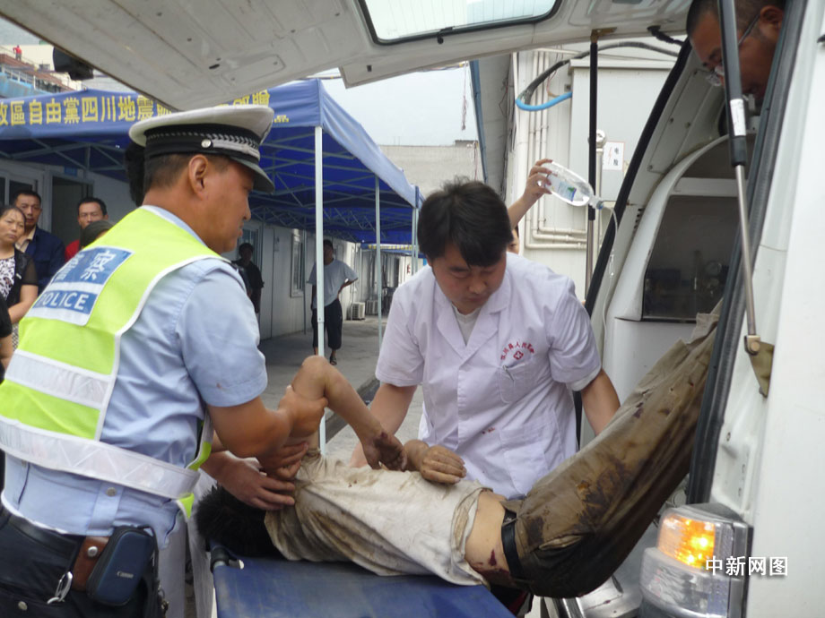 25日凌晨四點鐘左右,汶川縣境內國道二一三線徹底關大橋被山上飛下來的巨石砸斷,已造成100米的橋面坍塌,7輛汽車受損,12人不同程度受傷,3人死亡,都汶路通行中斷。圖為汶川縣人民醫院正在積極搶救傷員。 汶新 攝