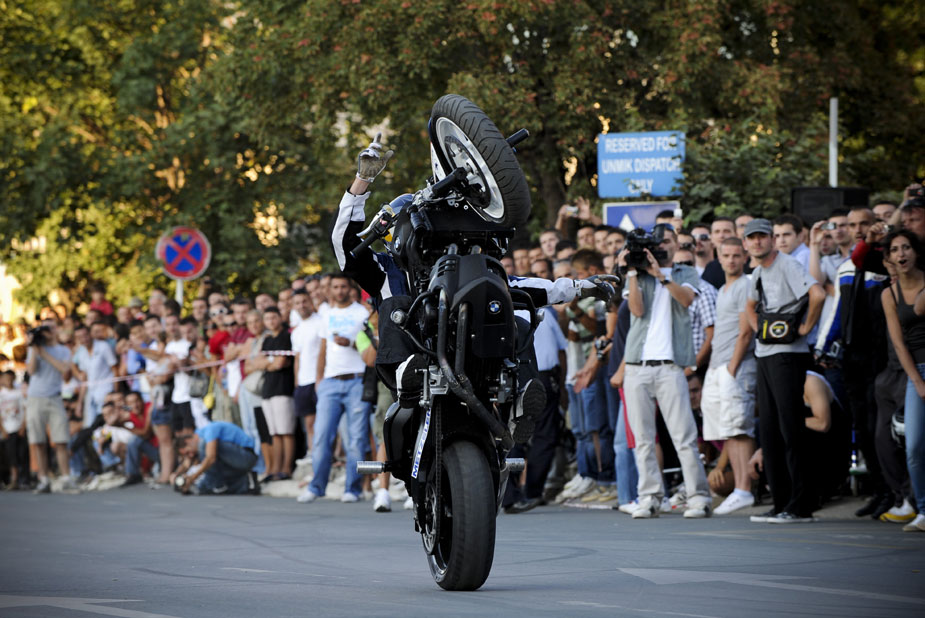 當(dāng)?shù)貢r間26日,德國著名的特技表演大師Chris Pfeiffer在科索沃地區(qū)的Pristina進(jìn)行一場街頭表演。