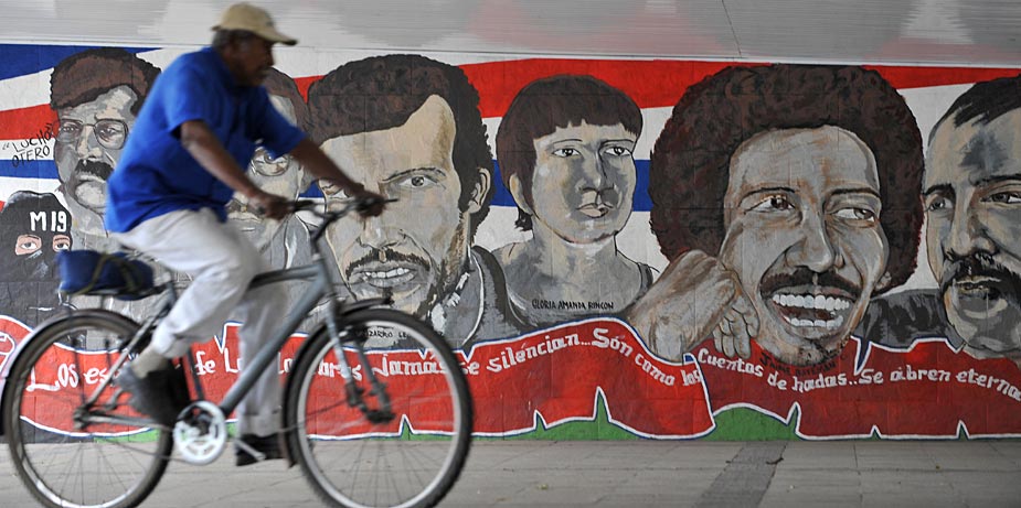 近日,哥倫比亞考卡山谷省卡利市的年輕人用涂料在墻上涂鴉,表達他們對世界的看法。