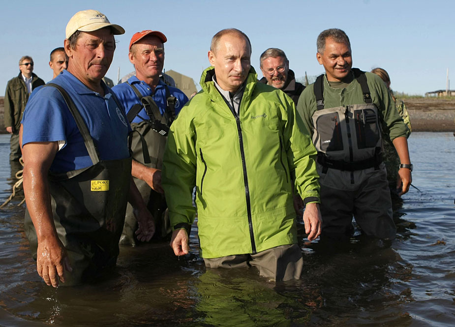 俄羅斯總理普京7月31日在太平洋的契卡洛夫島為一條白鯨裝上衛星追蹤器。其后他更幫手喂其他白鯨魚吃。