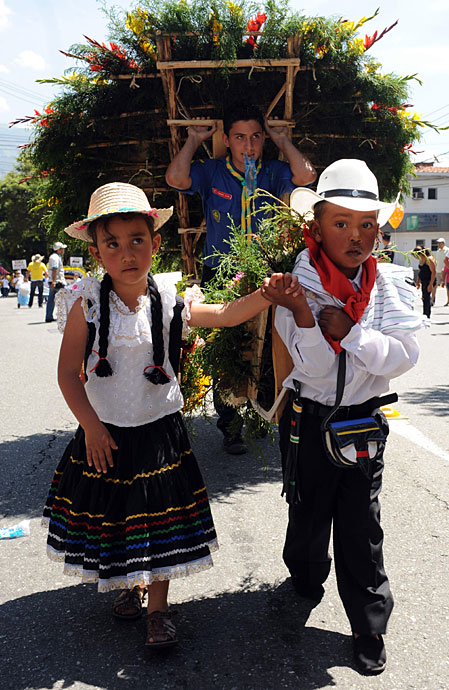 8月1日,在哥倫比亞麥德林,孩子們參加鮮花節游行。鮮花行業是哥倫比亞的主要產業之一。
