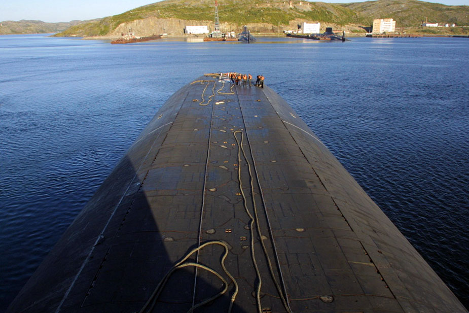 圖為艦艏的水兵反襯出臺風級的巨大體型。