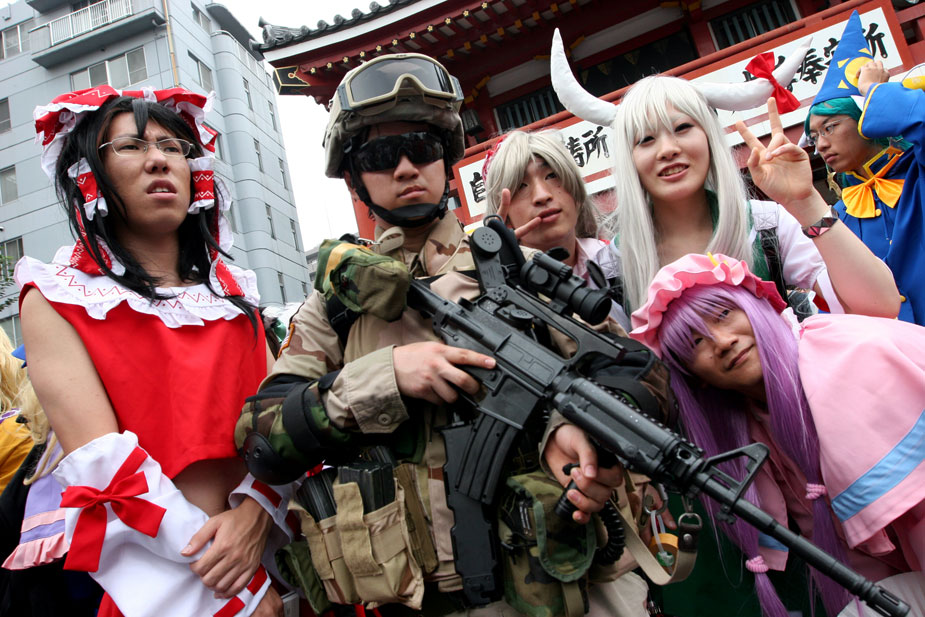 圖為一個男子扮成美國特種部隊士兵參加巡游。cosplay(角色扮演)指一種演繹角色的扮裝性質表演藝術行為,如今已成為風靡全世界的文化活動。