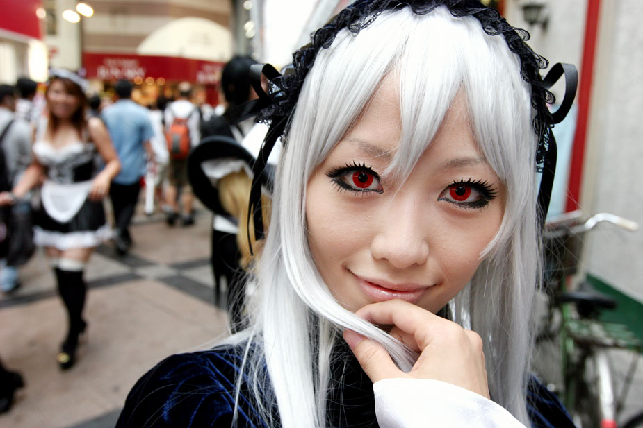 圖為一個日本女孩扮成吸血鬼參加巡游。cosplay(角色扮演)指一種演繹角色的扮裝性質表演藝術行為,如今已成為風靡全世界的文化活動。
