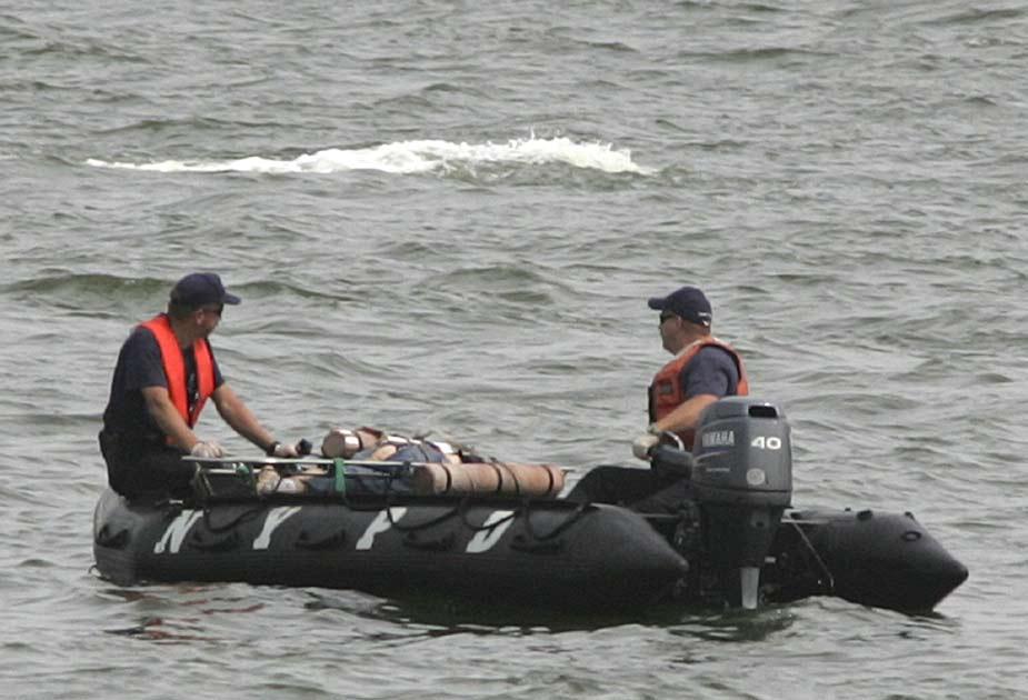 8月8日,紐約市曼哈頓西側(cè)的哈德遜河上空,一架觀光直升飛機(jī)和一架小型飛機(jī)相撞,兩飛機(jī)雙雙墜入河中。據(jù)稱(chēng)觀光直升飛機(jī)上載有五名意大利游客和一名飛行員,而小型飛機(jī)上則有三人。圖為救援人員在現(xiàn)場(chǎng)打撈。
