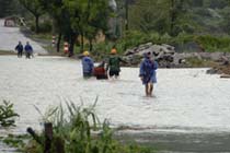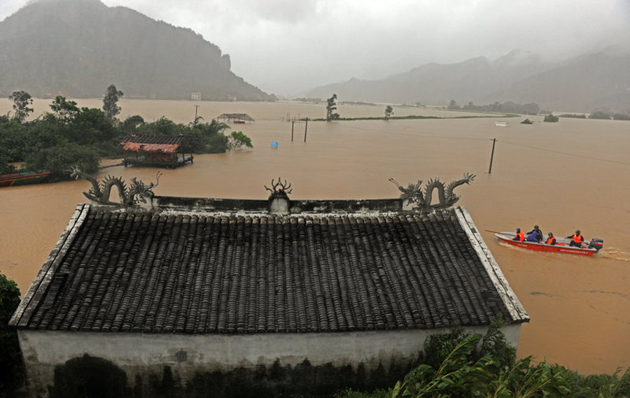 2009年8月9日,浙江溫州蒼南的附近農(nóng)村受臺風(fēng)大暴雨影響,大片村莊被淹。李頎拯/CFP