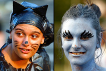 圖為參加狂歡節的人們在臉上進行“涂鴉”。