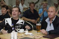 俄總統與總理一起看球