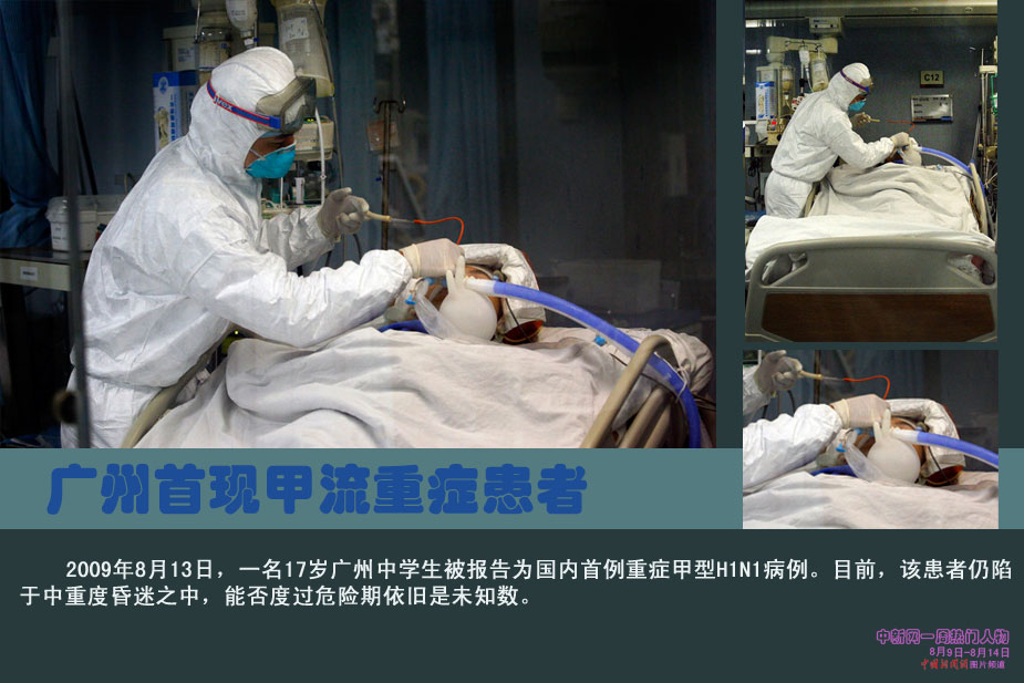 中新網本周熱點人物之廣州甲流患者——一名17歲廣州中學生報告為國內首例重癥甲型H1N1病例,目前在廣醫一院廣州呼吸病研究所ICU救治重癥監護。昨日記者在ICU外看到正接受重癥監護的這名特殊病例,他陷于中重度昏迷,能否度過危險期依舊是未知數。