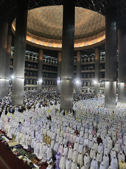 8月22日,世界各地的穆斯林迎來了傳統的齋月。圖為8月21日,印尼穆斯林在雅加達一所清真寺內祈禱,迎接齋月的到來。