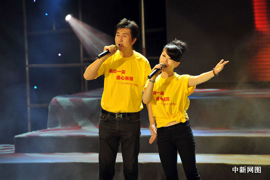 8月22日晚,北京舉行“兩岸一家 愛心無限”為臺灣同胞賑災(zāi)義演晚會,大陸和臺灣演藝界明星登臺為臺灣災(zāi)區(qū)同胞共獻愛心,晚會臨近結(jié)束時共收到各界捐款3000多萬元。中新網(wǎng)記者 金碩 攝