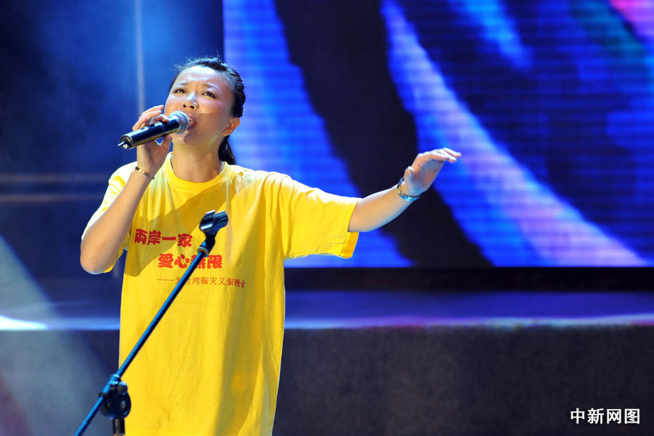 8月22日晚,北京舉行“兩岸一家 愛心無限”為臺灣同胞賑災義演晚會,大陸和臺灣演藝界明星登臺為臺灣災區(qū)同胞共獻愛心,晚會臨近結束時共收到各界捐款3000多萬元。中新網(wǎng)記者 金碩 攝