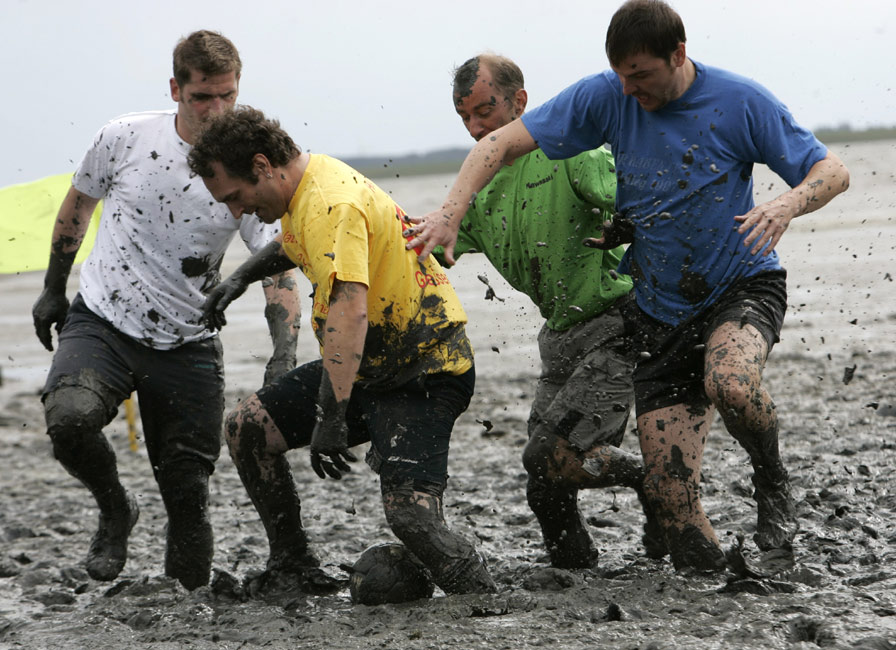 當(dāng)?shù)貢r間8月30日,德國北部海邊小鎮(zhèn)Brunsbuettel的泥灘上進行一場別開生面的泥地足球賽。男女“球員”混合在一起,泥地中盡情撒野,享受著不一樣的樂趣。