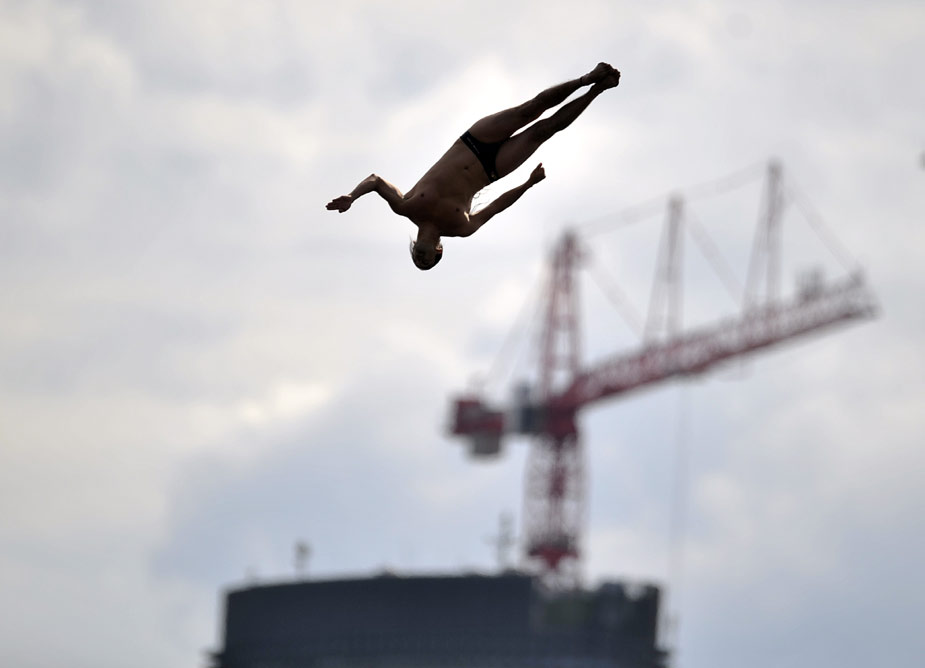 當(dāng)?shù)貢r(shí)間8月29日,世界懸崖跳水系列賽在德國(guó)漢堡舉行。圖片來(lái)源:中國(guó)新聞網(wǎng)