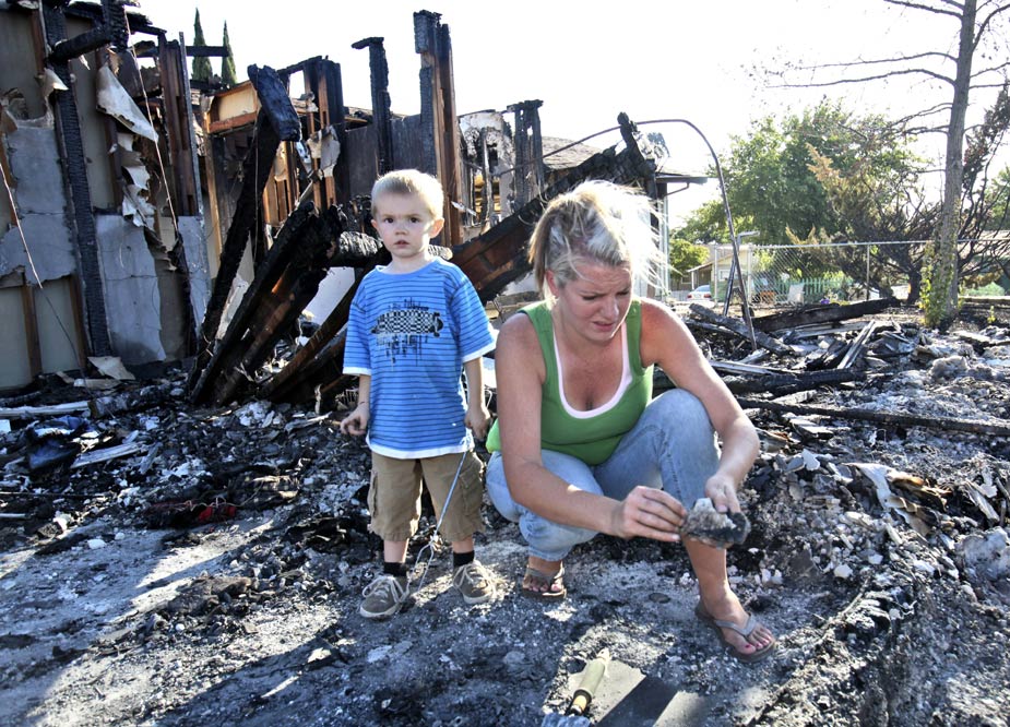 加州消防部門表示,火勢在一夜之間幾乎擴(kuò)散了一倍,如今五個鎮(zhèn)共計一點(diǎn)四萬公頃茂盛的灌木叢著火,波及拉克利仙塔至拉加尼達(dá)弗林楚奇之間十九公里的范圍。圖為受災(zāi)的民眾在被燒毀的家園尋找個人物品。