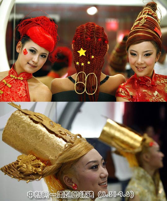 9月2日,昆明發型設計師們推出多款“國慶”發型,將黃色五角星、紅旗等元素應用在多款不同的發型上,每一款發型又都獨具特色。圖片來源:CFP