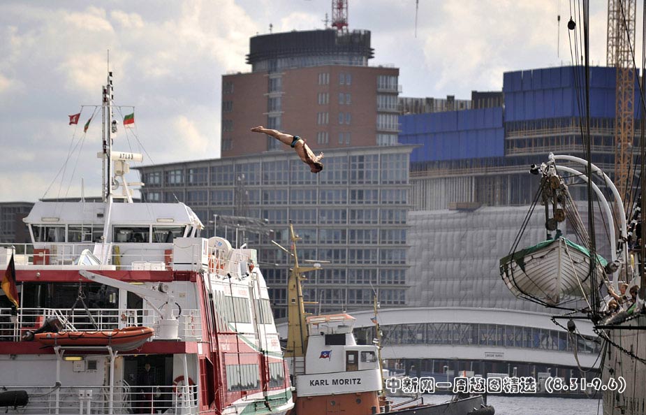 當(dāng)?shù)貢r間8月29日,世界懸崖跳水系列賽在德國漢堡舉行。圖片來源:中國新聞網(wǎng)