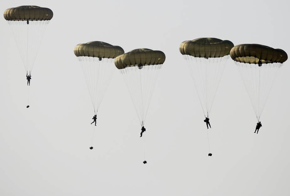 9月19日,英國空降兵在荷蘭埃德附近進行傘降表演,紀念二戰期間盟軍最大規模的空降作戰——“市場花園”行動65周年。