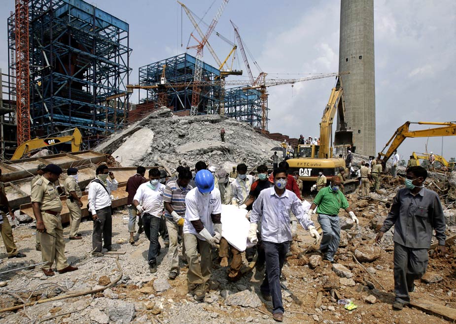 印度中部恰蒂斯加爾邦電力重鎮科爾巴地區一座在建電廠的巨型煙囪23日下午在壞天氣中倒塌,目前估計已有至少100人罹難。據消息人士表示,倒塌的煙囟設計高度是275米,倒塌時已完成了約100米高度。