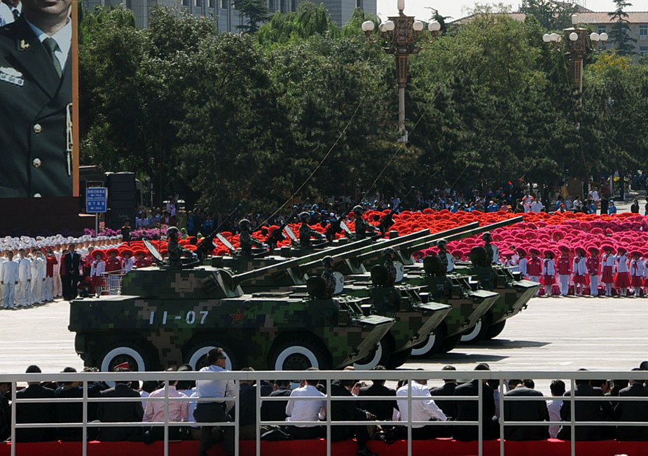 2009年10月1日,中華人民共和國成立60周年慶祝大會在北京天安門廣場舉行。圖為輪式自行迫榴炮方隊。中新網記者 攝