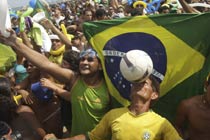 北京時間10月3日凌晨結束的2016年夏季奧運會舉辦城市投票中,巴西里約熱內盧經過三輪投票,擊敗馬德里、東京和芝加哥,成功獲得了2016年奧運會的主辦權。這將是現代奧林匹克運動自1894年首次在希臘舉辦之后,在一百多年的時間里首次來到南美洲大陸。圖為巴西民眾得知里約熱內盧獲得2016年奧運會主辦權后,在海灘上瘋狂歡慶。
