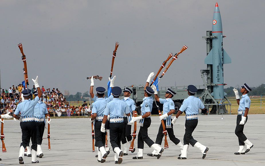 10月6日,印度空軍在新德里郊區的加濟阿巴德地區進行了精彩的飛行表演。這次飛行表演是為了迎接印度空軍建軍77周年慶典舉行的彩排式。圖片來源:中國新聞網