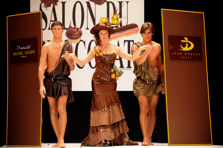 10月13日,第15屆法國巴黎巧克力展開幕,眾多明星身著巧克力服飾亮相。圖片來源:中國新聞網(wǎng)