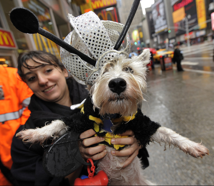 10月18日,在美國紐約時報廣場,眾多小狗在此參加第5屆年度狗狗化妝舞會表演。主辦方稱,這一活動的目的在于喚起人們對無家可歸和遭遺棄動物的關注。