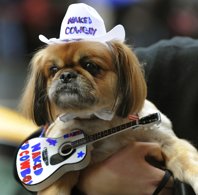 10月18日,在美國紐約時報廣場,眾多小狗在此參加第5屆年度狗狗化妝舞會表演。圖片來源:中國新聞網