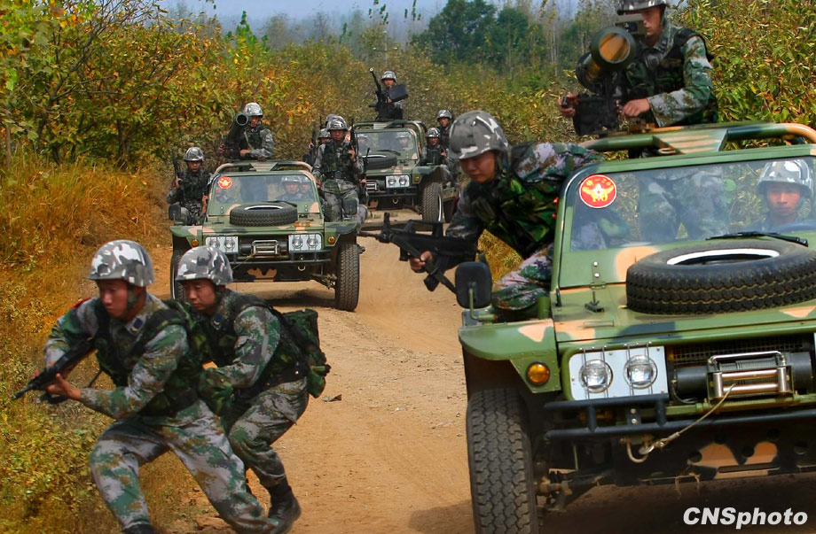 解放軍濟(jì)南軍區(qū)“前鋒-2009A”軍事演習(xí),將于10月21日在某合同戰(zhàn)術(shù)訓(xùn)練基地舉行,圖為即將參加演習(xí)的空降兵部隊(duì)10月20日在進(jìn)行針對性訓(xùn)練。這次演習(xí)主要是由兵力兵器數(shù)量規(guī)模向信息火力效能聚優(yōu)轉(zhuǎn)變、指揮的重心由主攻方向上的重點(diǎn)突破向作戰(zhàn)關(guān)節(jié)要害的體系毀癱轉(zhuǎn)變、火力的運(yùn)用由概略粗放決策向科學(xué)精細(xì)籌劃轉(zhuǎn)變、協(xié)同的重點(diǎn)由地面步坦行動向陸空火力協(xié)調(diào)轉(zhuǎn)變、行動的控制由時間位置推進(jìn)量向效果態(tài)勢達(dá)成度轉(zhuǎn)變、作戰(zhàn)的目的由殲敵奪地向控要制權(quán)轉(zhuǎn)變。 中新社發(fā) 宋吉河 攝